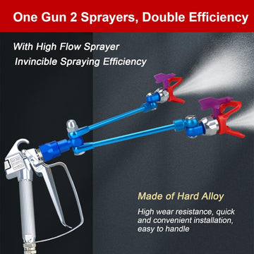 Questa prolunga ha due teste di spruzzo, il che significa più spazio per dipingere sulla parete, puoi risparmiare metà della tua forza e del tuo tempo durante il lavoro di verniciatura.