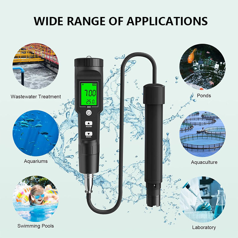 Il nostro misuratore di ossigeno disciolto è adatto per misurare i livelli di ossigeno disciolto e la temperatura in vari ambienti, tra cui acquari, piscine, stagni, acquacoltura, ricerca e altro ancora. Fornisce risultati costantemente precisi in diversi ambienti.