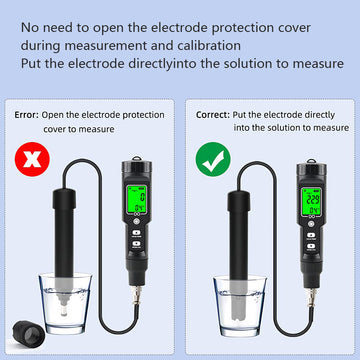 È possibile misurare e calibrare senza rimuovere la copertura protettiva dell'elettrodo. È sufficiente immergere l'elettrodo per un utilizzo rapido e senza problemi, mentre la funzione di compensazione automatica della temperatura (ATC) garantisce risultati accurati in un intervallo di temperatura da 0 a 50 °C.