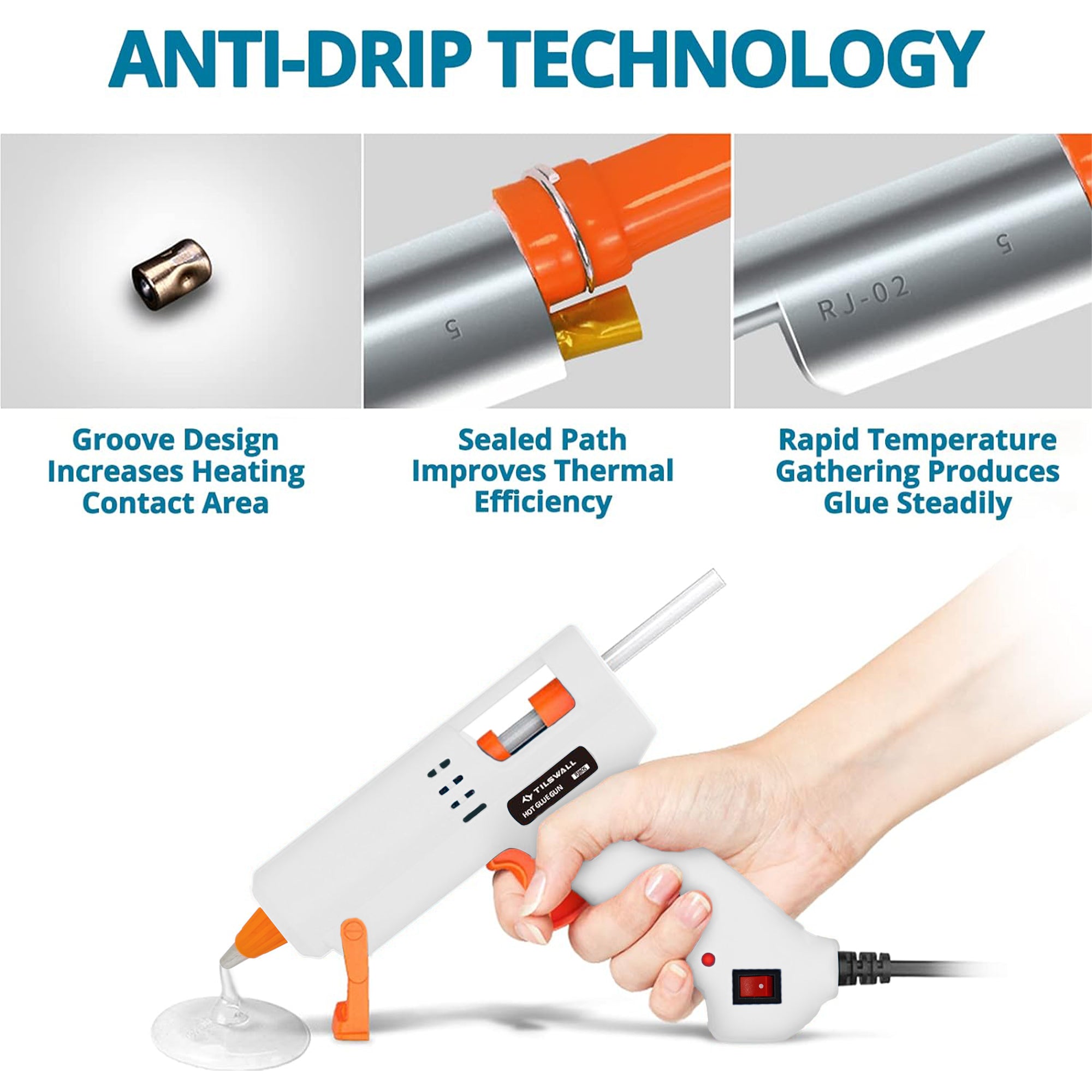 Sperimentate l'incollaggio ad alta temperatura abbinato a un innovativo manicotto in silicone. Dite addio alla degommatura perché la nostra funzione antigoccia a tenuta di vuoto previene le perdite di colla e le bolle. L'elemento riscaldante allargato da 50W assicura una rapida disponibilità in soli 3 minuti, mantenendo una temperatura costante di 165℃ per fondere efficacemente gli stick di colla senza intasare l'ugello, fornendo una prestazione davvero a prova di gocciolamento
